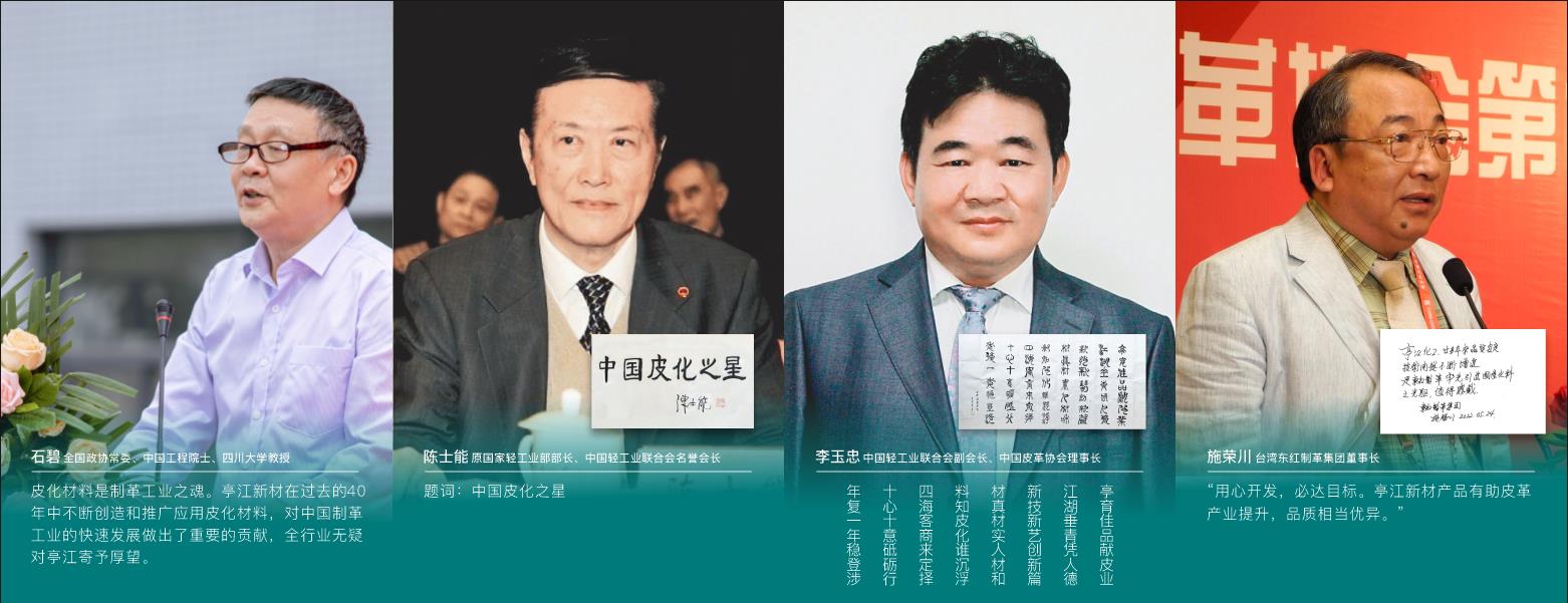 四川亭江新材料股份有限公司前身為創建于1983年的“亭江皮化”,坐落在素有“川西明珠”之譽的四川省什邡市。經過40年的持續發展,公司已成為中國皮革化學品行業名譽主席及功勛企業。 主要產品